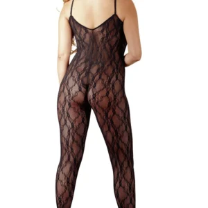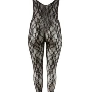 Schwarzer Spitzenoverall mit tiefem Ausschnitt – R2550008