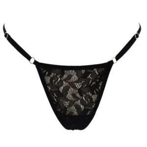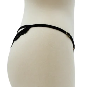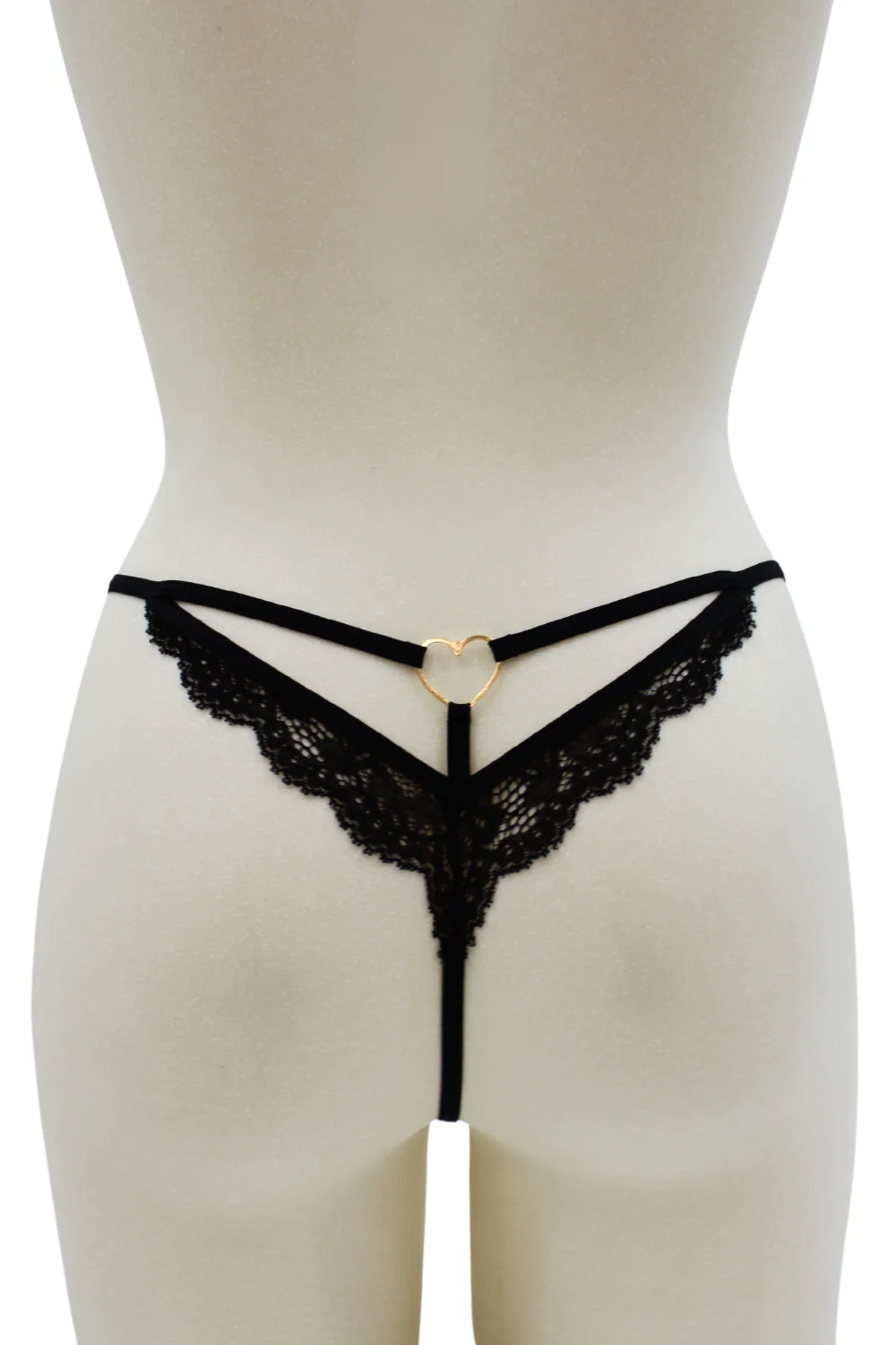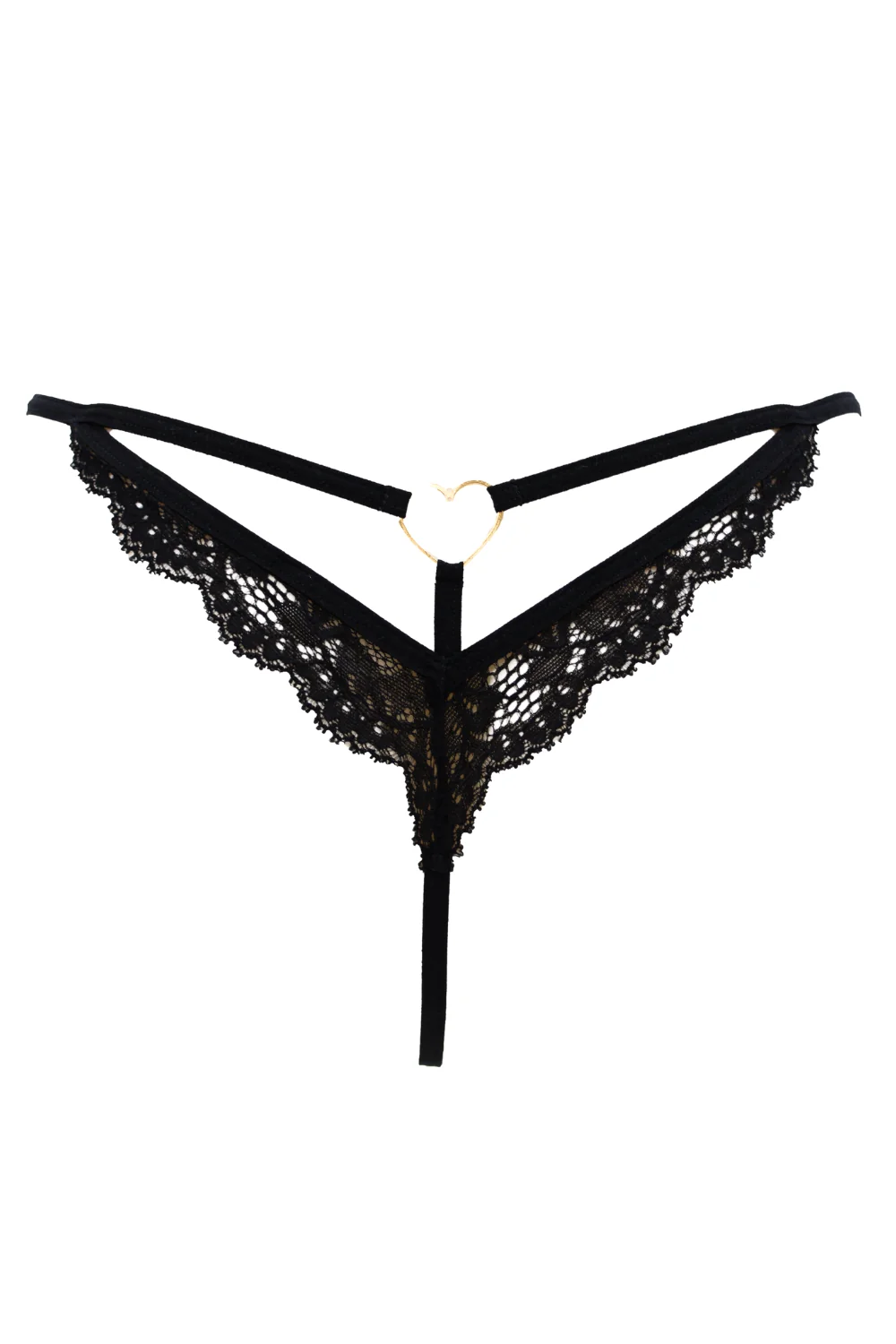 Schwarzer Spitzenstring mit goldenem Herzschmuck – PA02MBLK