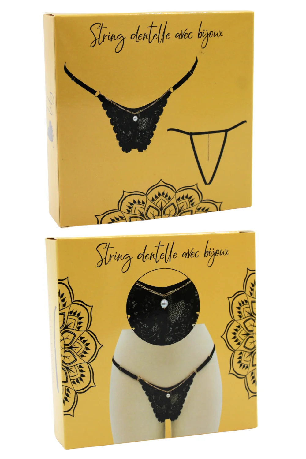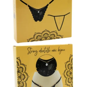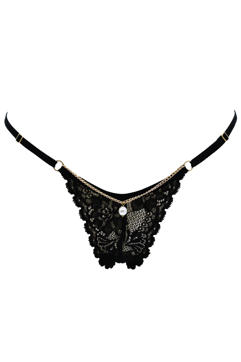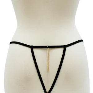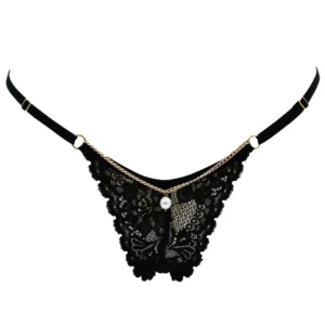 Schwarzer Spitzenstring mit Schmuck und goldener Kette – PM06G-BBLK