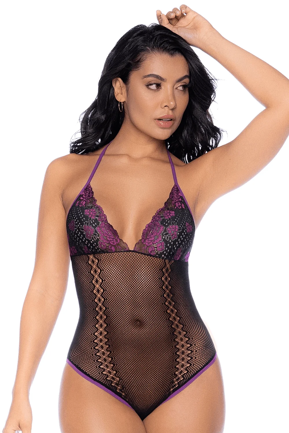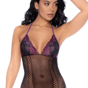 Fügen Sie Ihrer Sammlung einen Hauch von Verführung hinzu mit diesem romantischen Netz-Body. Seine zarten schwarzen und violetten Spitzenkörbchen, die kontrastierenden Details und der Neckholder betonen die Silhouette mit Eleganz. Dieses Set wird durch passende Handschuhe für einen noch verführerischeren Look ergänzt. – Feines und dehnbares Netz für eine perfekte Passform – Florale Spitzenkörbchen für einen raffinierten Touch – Neckholder für ein verführerisches Dekolleté – Kontrastierende Details, die das Design hervorheben – Handschuhe inklusive für ein glamouröses Finish Pflegehinweise: Handwäsche. Nicht bleichen. Nicht bügeln. Zusammensetzung: Netz: 95 % Polyamid, 5 % Elasthan – Spitze: 60 % Polyamid, 30 % Rayon, 10 % Elasthan – Elastisch: 70 % Polyamid, 30 % Elasthan