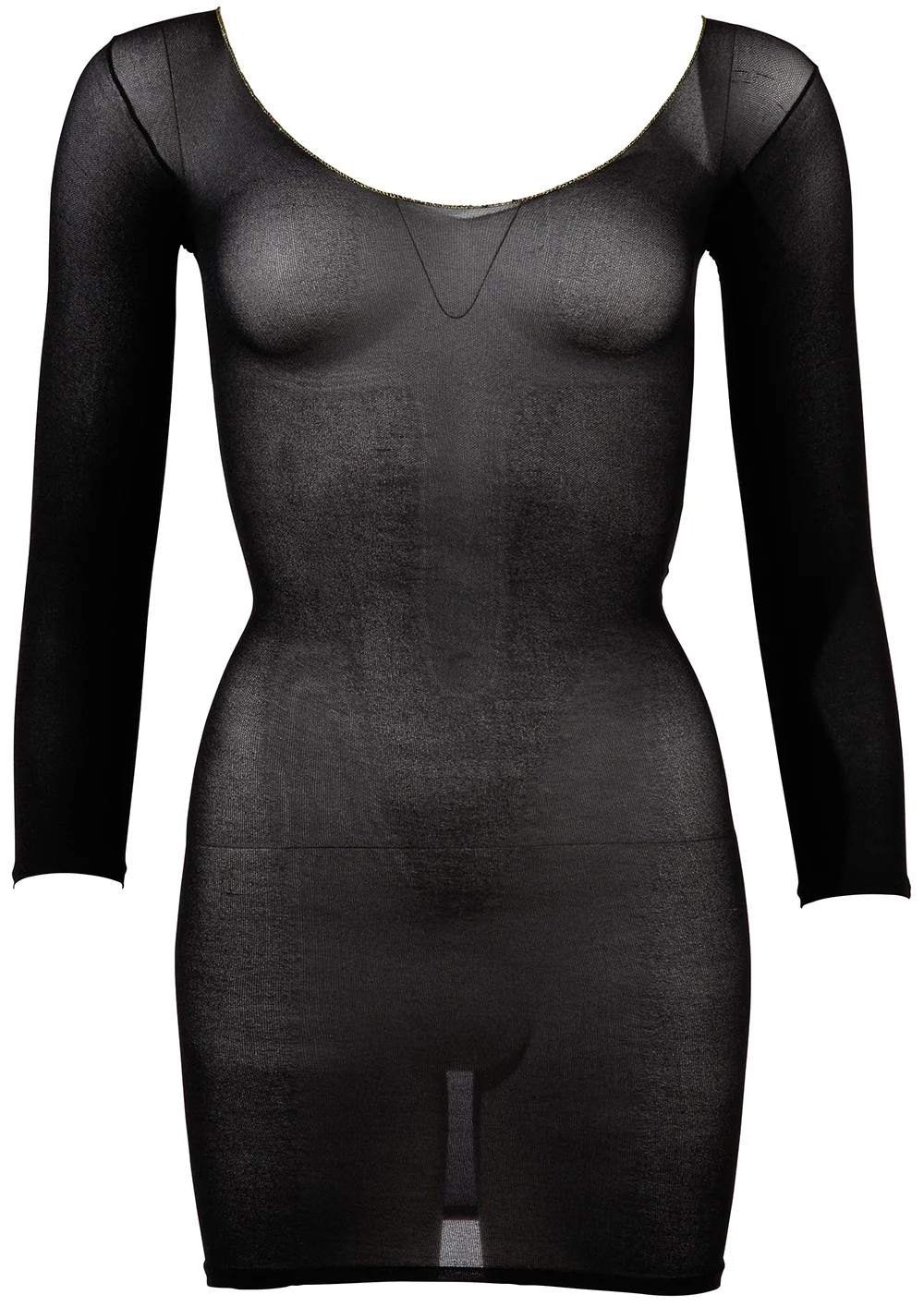 Schwarzes, durchsichtiges Netzkleid, lange Ärmel – R27138101101