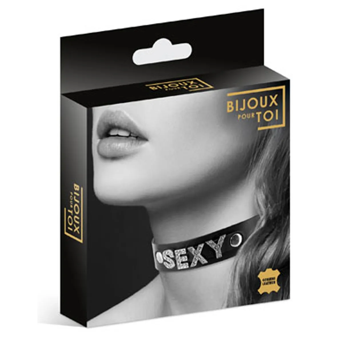 Für Ihre erotischen Spiele wählen Sie dieses „SEXY“ Halsband aus schwarzem Leder. Ein verstellbares Fetisch-Halsband mit Druckknöpfen auf der Rückseite. Aufschrift „SEXY“ mit Strasssteinen. Länge 46 cm, Höhe 2 cm.