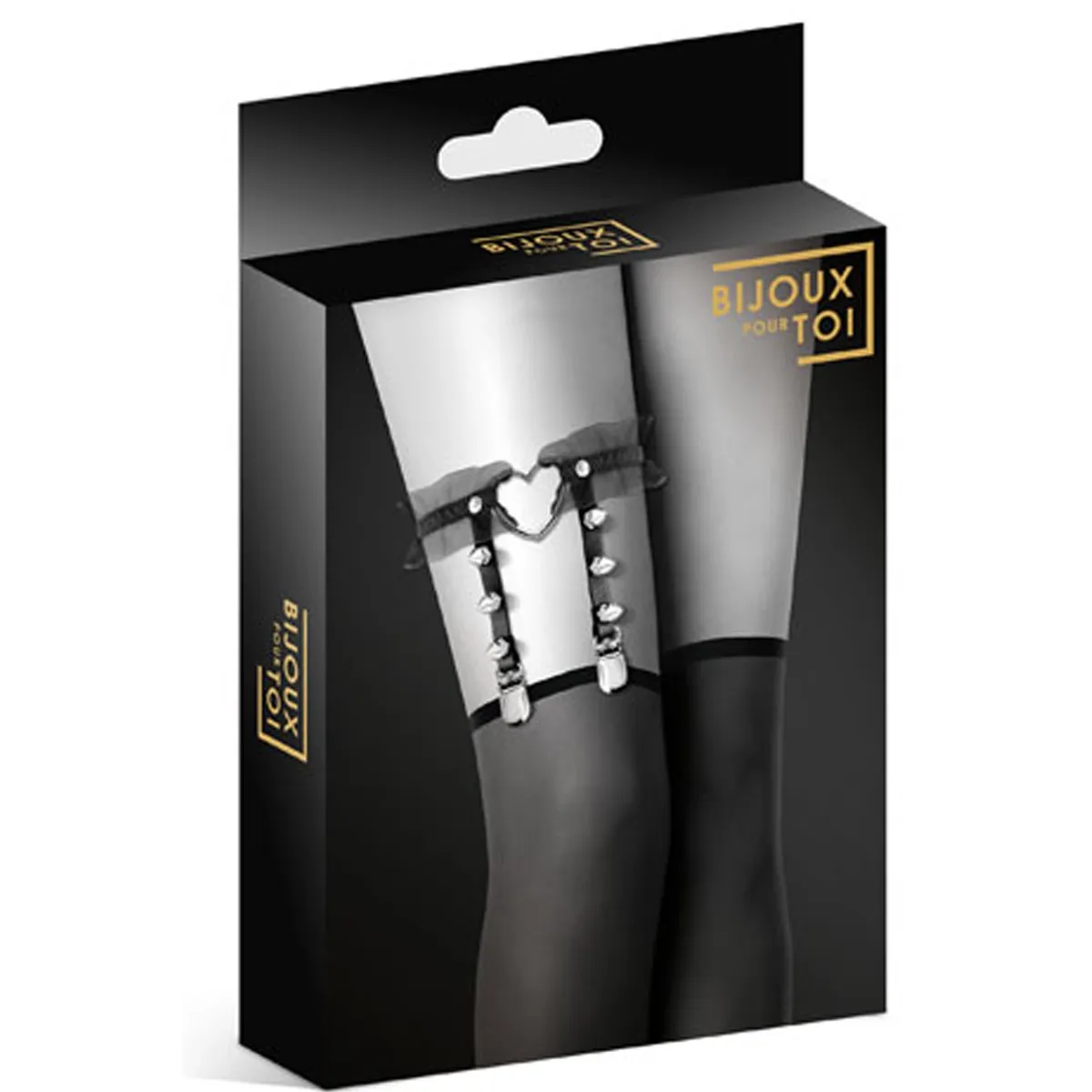 Schwarzes Strumpfband mit Herz, Nieten und Tüll – CC6060100010