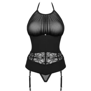 Vous rêvez d’une lingerie qui vous fasse sentir sulfureuse, séduisante et confortable à la fois ? Le corset Serafia mettra en valeur vos courbes sexy ! La combinaison unique de matières vous rendra hypnotisante et la sangle de cou assurera votre confort. Plongez dans le plaisir !Découvrez plus de détails :- string et corset en noir- un ajustement parfait grâce à la fermeture en plusieurs étapes et aux bretelles et porte-jarretelles réglables- accentuation des courbes féminines assurée par des armatures verticales et un tour de cou – porte-jarretelles amovibles- pendentif brillant – un accessoire minimaliste- une combinaison intéressante de tissus agréables au toucher 94 % de polyamide, 6 % d’élasthanne