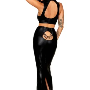 Set aus BH und langer schwarzer Rock aus Kunstleder – DG13198BLK