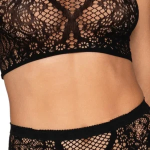 Viel Finesse in diesem Set, Dreamgirl, bestehend aus zwei Teilen, einschließlich: Sein BH aus feinem Netz, rückenfrei mit Spitzenmuster und Verschluss im Nacken. Passende Strumpfhose mit Spitzen-Stringdruck, Strumpfband und Overknee-Stiefeln. Zusammensetzung: 90% Nylon, 10% Spandex