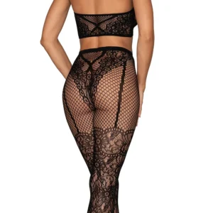 Set aus feinem Netz-BH und bedruckter Strumpfhose – DG0391BLK