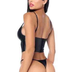 Sexy 2-teiliges Set in Schwarz aus Kunstleder mit Bügel-Bustier – MAL2803BLK