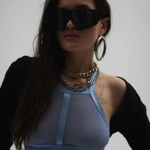 Shaderi top et stringUn ensemble de lingerie bleue fabriquée à partir de tissus haut de gamme et luxueux, offrant une sensation de toucher agréable. Le haut est doté d?un dos exposé séduisant, fixé avec des crochets et une sangle réglable. Le string asymétrique avec des bordures confortables assure un ajustement flatteur pour chaque silhouette. ensemble de lingerie bleue : top et stringsangle avec fermeture au niveau du coufermeture réglable à l?arrièremaille transparente et garnitures brillantes94% polyamide, 6% élasthanneconçu dans l?UEsans nickel