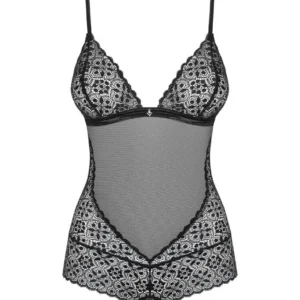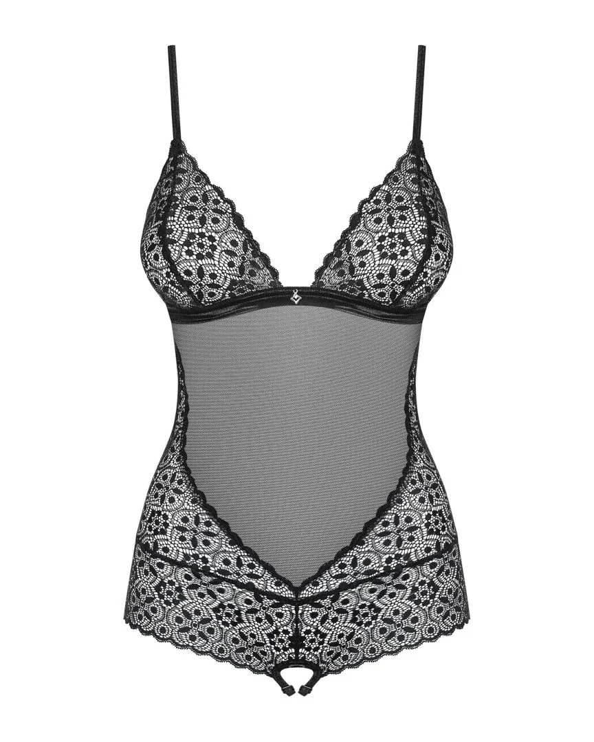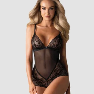 Vous allez adorer le design parfait du body ouvert Shibu. Son design tendance mettra en valeur vos courbes sexy et pimentera les moments câlins avec votre amoureux ! Tous les détails:     Body sensuel et coquin     Maille transparente et dentelle géométrique – design incroyable    Bretelles réglables et fermeture à plusieurs étages – ajustement parfait     Coutures spéciales – effet amincissant optique et courbes accentuées     Coupe sexy dans le dos     Petite parure – détail charmant     Entrejambe ouverte épicée   Sangles réglables à l’entrejambe – contrôle total de la coupe     Les tissus sont agréables au toucher et élastiques      Compositions: (90% polyamide, 10% élasthanne)