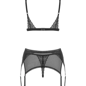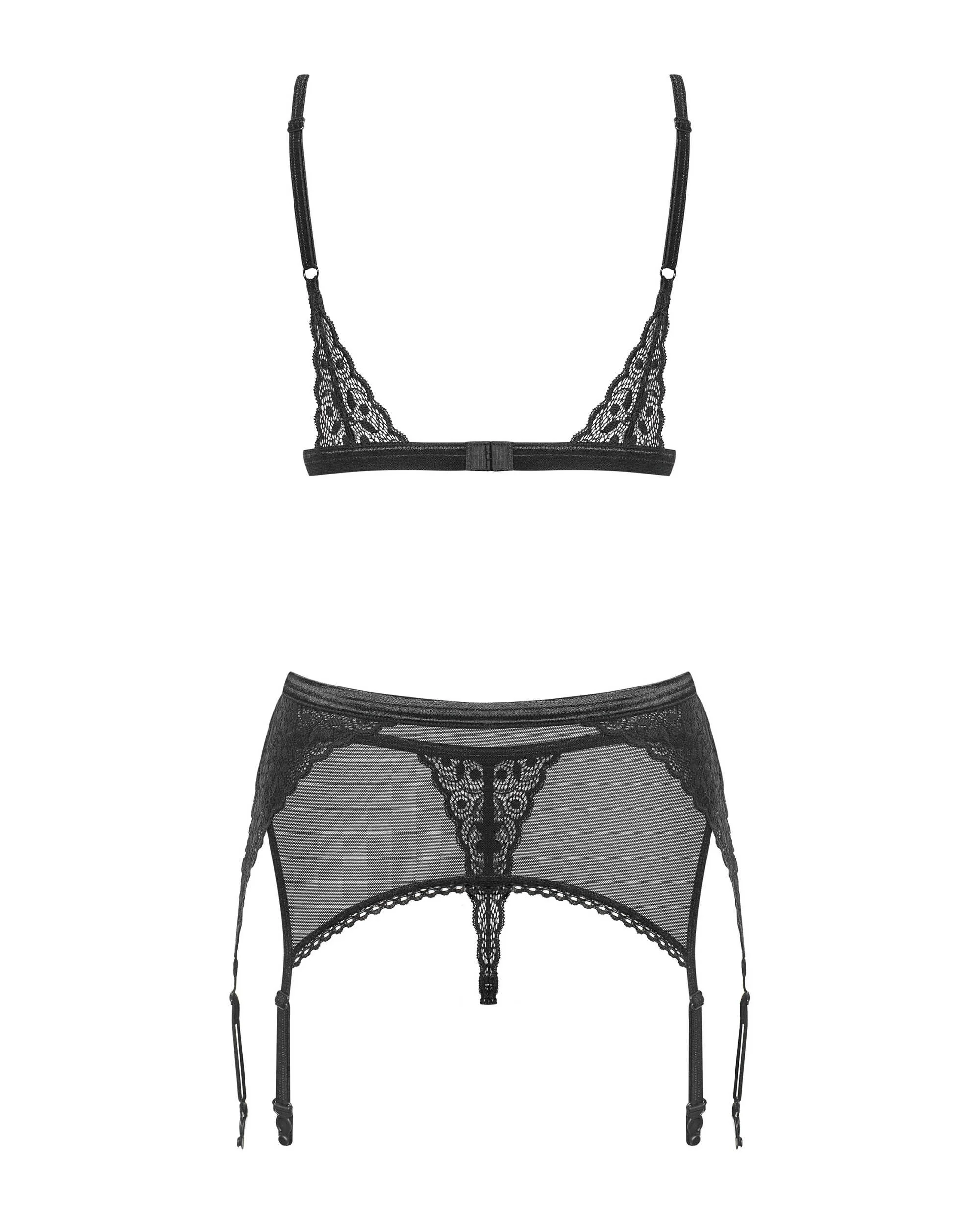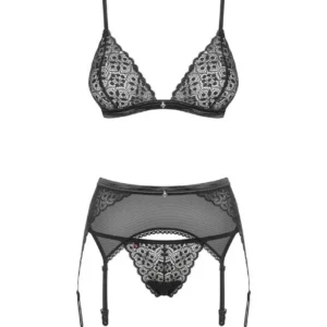 Enfilez cet ensemble noir sexy et vérifiez ses effets dans la chambre à coucher. Grâce à la dentelle géométrique, vos courbes sexy seront encore plus mis en valeur et vous vous sentirez fantastique! Vous avez maintenant la recette pour une nuit agréable avec votre partenaire. Tous les détails spéciaux : Ensemble élégant et sexy avec porte-jarretelles Dentelle avec motif géométrique Soutien-gorge avec bretelles réglables et fermeture à plusieurs niveaux – contrôle total de la coupe Porte-jarretelles avec six jarretelles réglables – un ajustement parfait et un look séduisant! Deux pendentifs décoratifs – détails élégants Cet ensemble comprend un soutien-gorge, un porte-jarretelles et un string en dentelle Bas non inclus – nous recommandons les bas Shibu Tissus délicats et élastiques Composition : 85% polyamide, 15% élasthanne