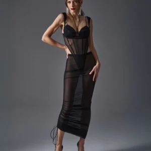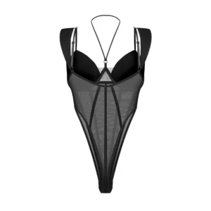 Sibilie teddyUn body exquis en maille élastique avec des coutures décoratives. Il est doté de bonnets rembourrés, de bretelles réglables et d?une sangle serrée autour du cou. Le design élancé allonge les jambes et révèle les hanches. Des bretelles larges et non standard ainsi qu?une fixation à trois niveaux assurent un confort de port.- body en noir profond- filet élastique- Tulle double couche légèrement élastique sur la poitrine- sangles réglables et fermeture à trois niveaux- pendentif minimaliste- sans nickel- 94% polyamide, 6% élasthanne- conçu dans l?UECe produit ne convient pas aux enfants de moins de 3 ans en raison du risque d?étouffement sur les petites pièces qui peuvent se détacher du produit.