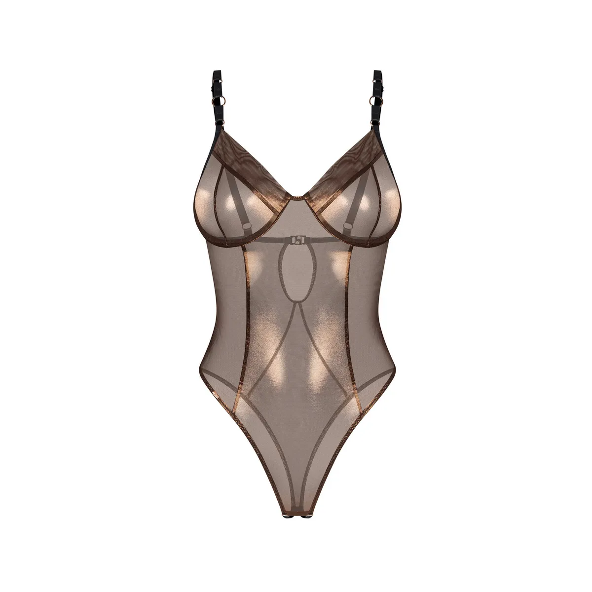 Teddy ohne Haken von SorannaTeddy ohne Haken aus zartem und transparentem goldenen Netz. Die Bügel betonen die Brust, während der figurbetonte Schnitt die weibliche Silhouette verbessert. Der offene Schritt verleiht dem Gesamtdesign eine provokante und gewagte Note.- Eleganter Body mit einer würzigen Note (offener Schritt)- Bügel-Cups für Unterstützung und Form- Verstellbare Träger- Transparenter Netzstoff mit goldenem Glanz- Figurbetonte und körpernahe Passform- Stoff: 95% Polyester, 5% Elasthan- Entworfen in der EUDieses Produkt ist nicht für Kinder unter 3 Jahren geeignet – Erstickungsgefahr durch kleine Teile, die sich vom Produkt lösen können.