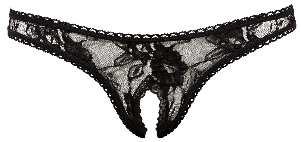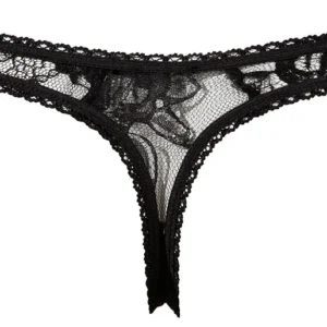 String mit offenem Schritt aus schwarzer Spitze – R2320002