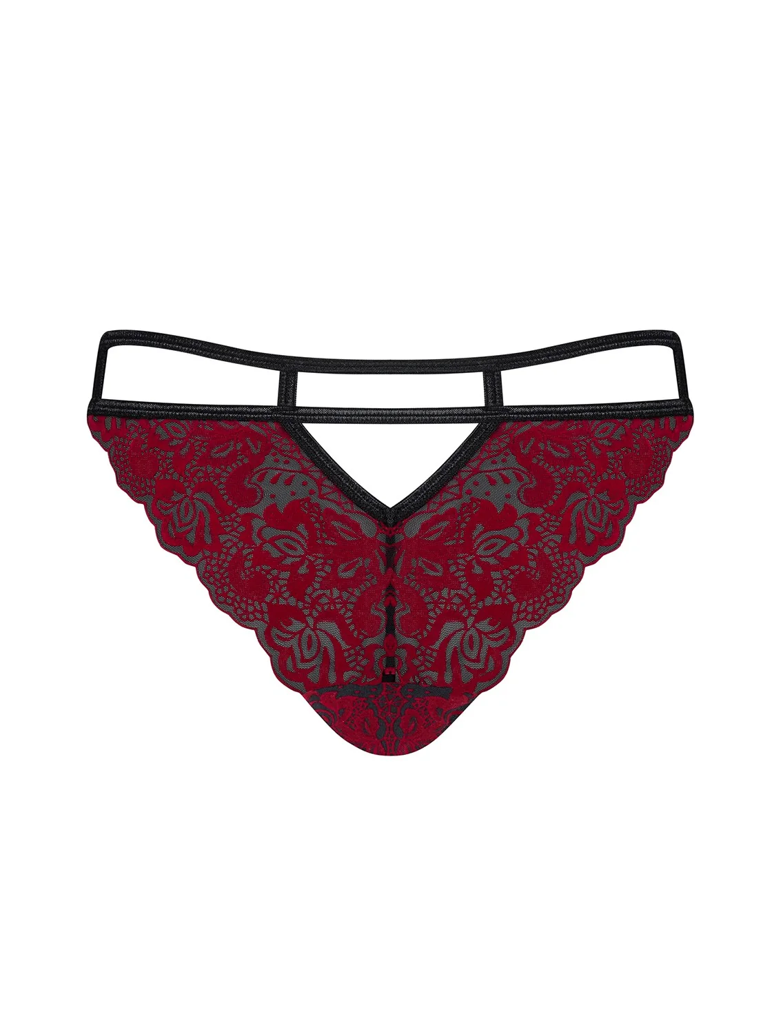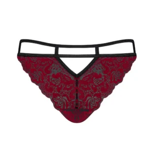 Überraschen! Der Schnitt Sugestina wird Ihnen helfen, die Kontrolle im Schlafzimmer zu übernehmen. Lassen Sie sich von Bordeaux, dem samtigen Muster, den schwarzen Riemen und dem fantasievollen Schnitt dieser Culotte verführen. Bald wird diese Culotte mit außergewöhnlicher Eleganz, ihrem untypischen Schnitt und der faszinierenden Farbkombination Ihnen gehören!