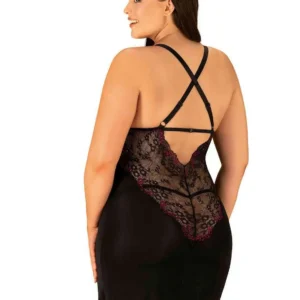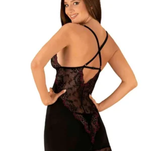 Nuisette Vanessme Nuisette et string fémininsLa nuisette noire Vanessme est l’alliance idéale d’une féminité subtile et d’un piquant raffiné. Des détails coquins sous la forme d’empiècements en dentelle et une découpe dans le dos vous feront vous sentir super sexy, mais aussi confortable. Vanessme est fabriqué à partir d’un matériau élastique qui garantit un confort de port élevé. Apprenez à connaître les détails :- l’ensemble noir avec des détails bordeaux comprend une chemise et un string- la découpe séduisante en dentelle souligne le dos- coupe effrénée qui fait ressortir vos atouts- coupe idéale grâce aux bretelles réglables- matière agréable, souple et près du corps (90% polyamide, 10% élasthanne)