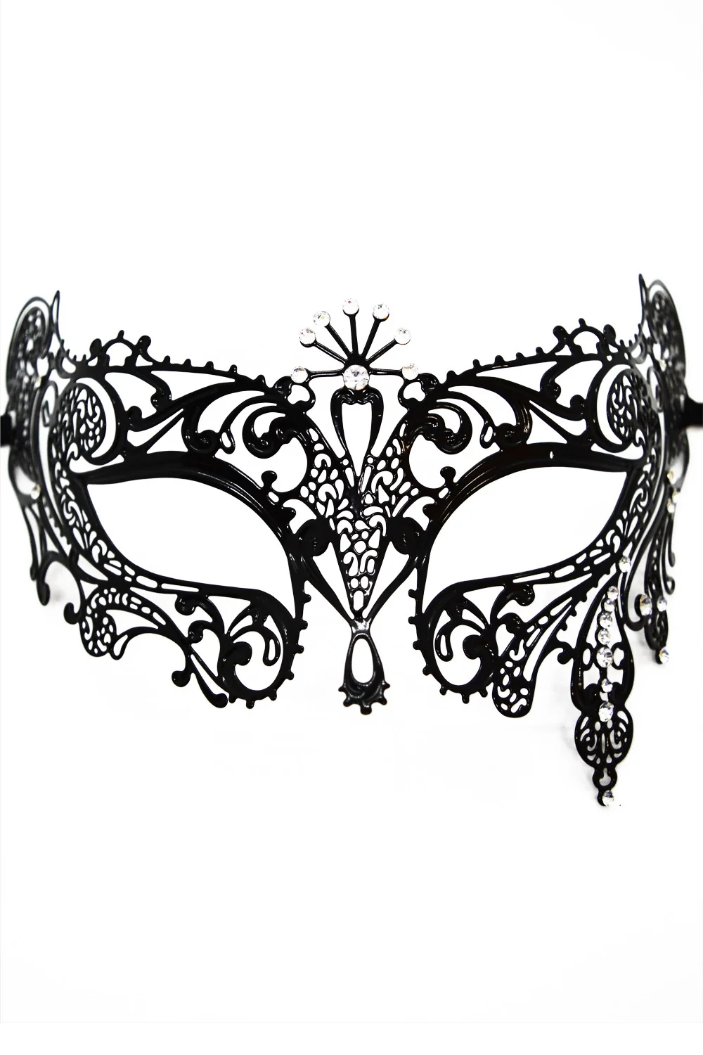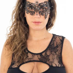 Venezianische Maske Bianca starr schwarz mit Strass. Befestigung mit Bändern. Eine hochwertige venezianische Maske für Ihre Kostüm- oder sinnlichen Abende. Zusammensetzung: Metall und Strass