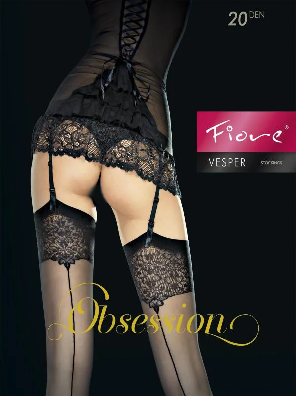 Vous ne pourrez plus vous en passer ! Les bas nois Vesper seront votre plus fidèle allié dans votre mission séduction. Leur large jarretière en dentelle au motif floral et leur couture sur l’arrière des jambes leur confèrent un style ultra glamour et sophistiqué auquel nul ne peut résister. Parfaite finition mate et renforcement de la pointe des pieds invisible.Fiore conçoit ses bas avec des fils d’excellente qualité afin de garantir une durabilité maximale. Composition : 86% polyamide, 14% élasthanne