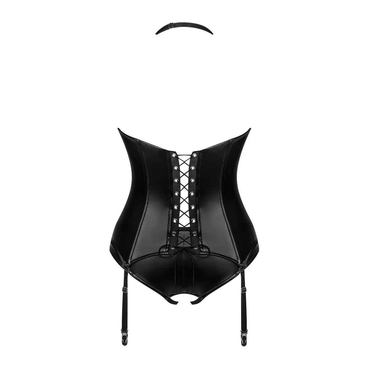 Korsett ViranesDieses schwarze Korsett, das mit Versuchung im Sinn entworfen wurde, wird Ihnen helfen, Ihre tiefsten Fantasien zu verwirklichen. Sehen Sie, wie es perfekt zu Ihrem Körper passt, die weiblichen Formen betont und Sexappeal hinzufügt. Eine überraschende Lösung ist ein Höschen mit offenem Schritt, das sicherlich unvergessliche Momente voller Nähe schaffen wird.Erfahren Sie mehr:- verführerische Dessous mit offenem Schritt – String und Korsett- Schnürung am Rücken, verstellbarer Neckholder und Strumpfhalter – für eine perfekte Passform- dank der vertikalen Verstärkung und des Neckholder-Trägers können Sie Ihre Reize auf exquisite Weise zur Schau stellen- abnehmbare Strumpfhalter- ein kleiner Anhänger – ein unvergessliches Detail- glänzender Stoff – fügt ein wenig Kante hinzu und sorgt für Ihren Komfort (100% Polyurethan)