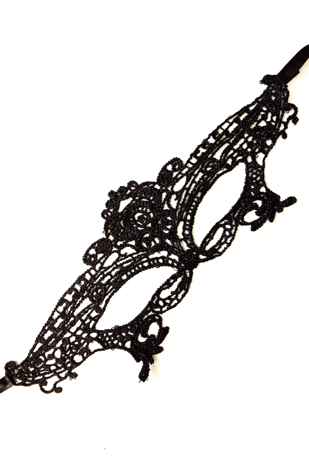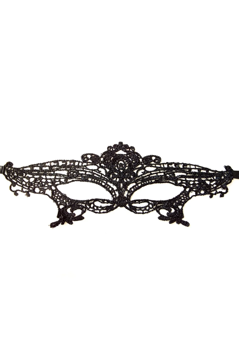 Schöne Maske aus weicher schwarzer Stickerei zum Binden mit satinierten Bändern, um Ihr Gesicht zu betonen. Sie werden die Person des Abends sein, die man anschaut, wenn Sie diese weiche venezianische Maske aus gestickter Spitze tragen. – Verkleidung Wölfe, Maske – Einheitsgröße – 100 % Polyester