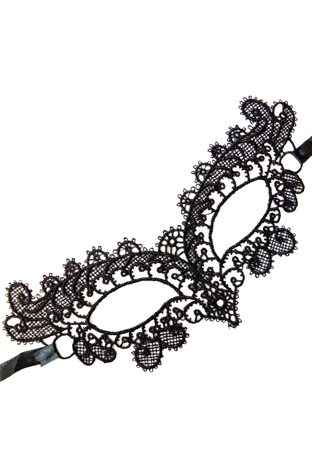 Verleihen Sie Ihrer Silhouette mit dieser wunderschönen schwarzen Maske aus weicher Stickerei, die mit satinierten Bändern gebunden wird, einen Hauch von Eleganz. Sie werden die Person des Abends sein, die man im Auge behält, wenn Sie diese weiche Maske aus bestickter Spitze tragen. – Verkleidung Masken, Maske – Einheitsgröße – 100 % Polyester