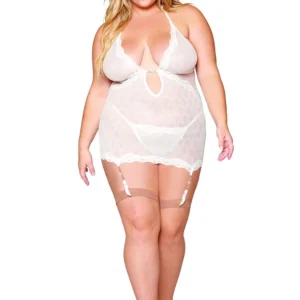 Weiße große Straps-Corsage mit Strass und String inklusive – DG13313XWHT