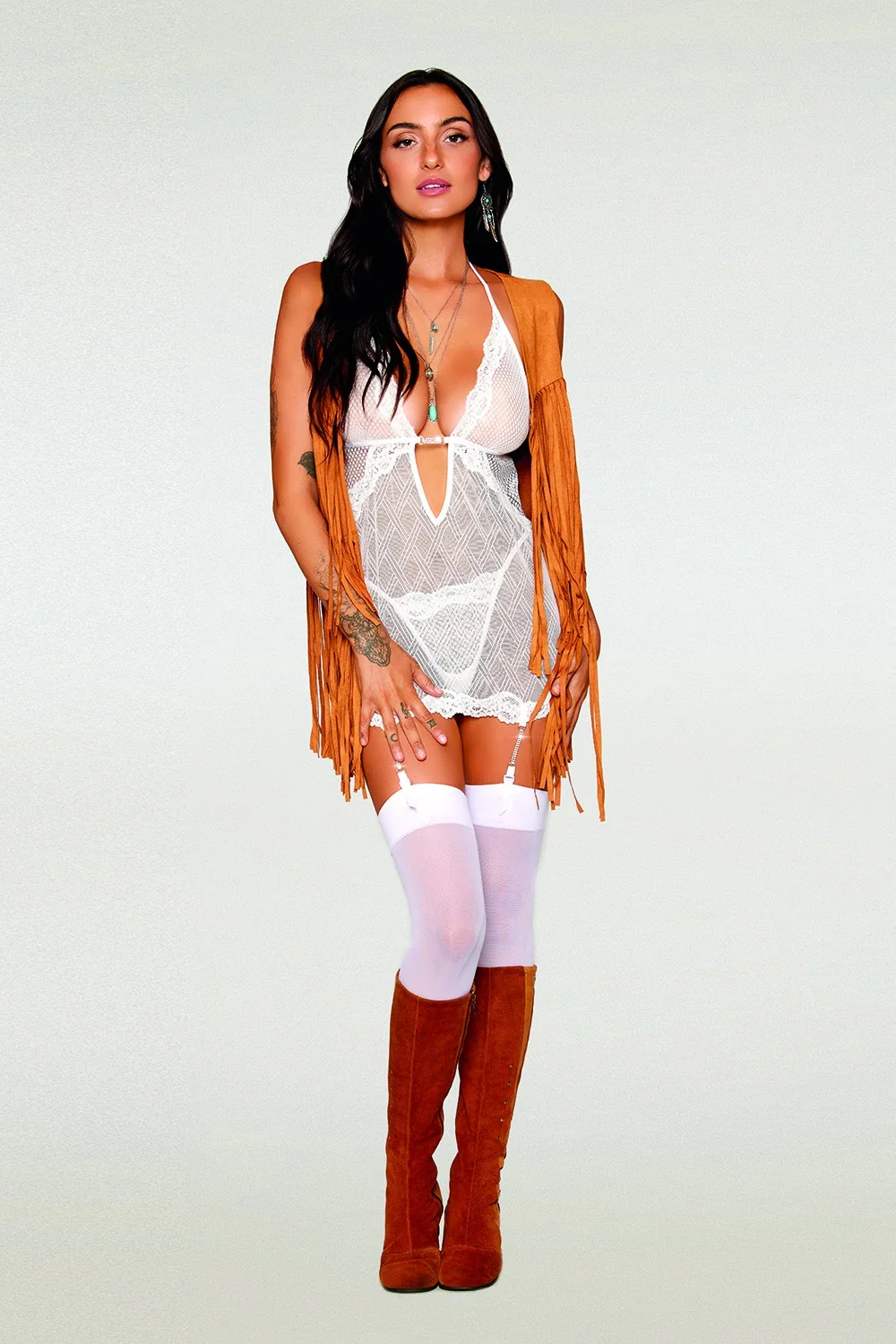 Weiße Strumpfhalter-Corsage mit Strass und String inklusive – DG13313WHT