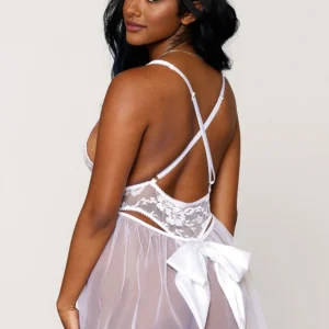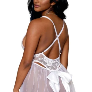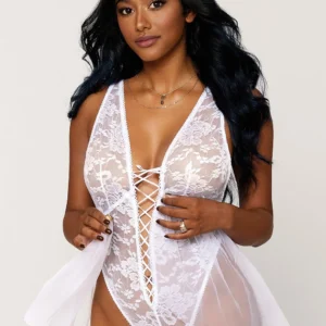 Weißer Spitzenbody mit abnehmbarem Tüll – DG12918WHT