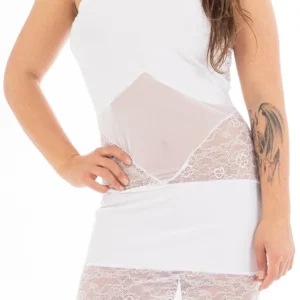 Ein prächtiges Kleid für einen Cocktailabend. Dieses weiße Kleid hat einen Bustierschnitt und Neckholder-Träger. Opazität und Transparenz mischen sich mit angenehmem Stoff, feinem Netz und floraler Spitze. Wunderschöne Einsätze, die diesem Modell einen unglaublichen Charme verleihen. Dieses weiße Clubwear-Kleid weckt das starke Verlangen, zu sehen, was darunter passiert. Ein weiterer Vorteil dieses hübschen Kleides ist, dass es sich leicht ausziehen lässt. Zusammensetzung: 92% Polyester 8% Elasthan