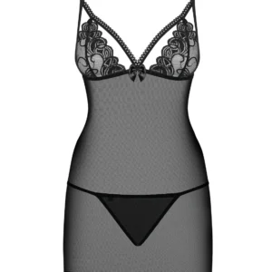 Dans un tissu légèrement transparent, cette nuisette sexy noire est un véritable bijoux pour les yeux et d’un confort incroyable pour le corps. Très en vogue, les ornements de poitrine décoré de dentelle viennent sublimer le décolleté. Dentelle raffinée sur les seins et sur le bas de cette nuisette, string assorti fourni et bretelles réglables pour un ajustement parfait. Cette nuisette coquine est composée de 90% polyamide, 10% elasthanne.Découvrir toute la collection de lingerie sexy Wonderia Obsessive