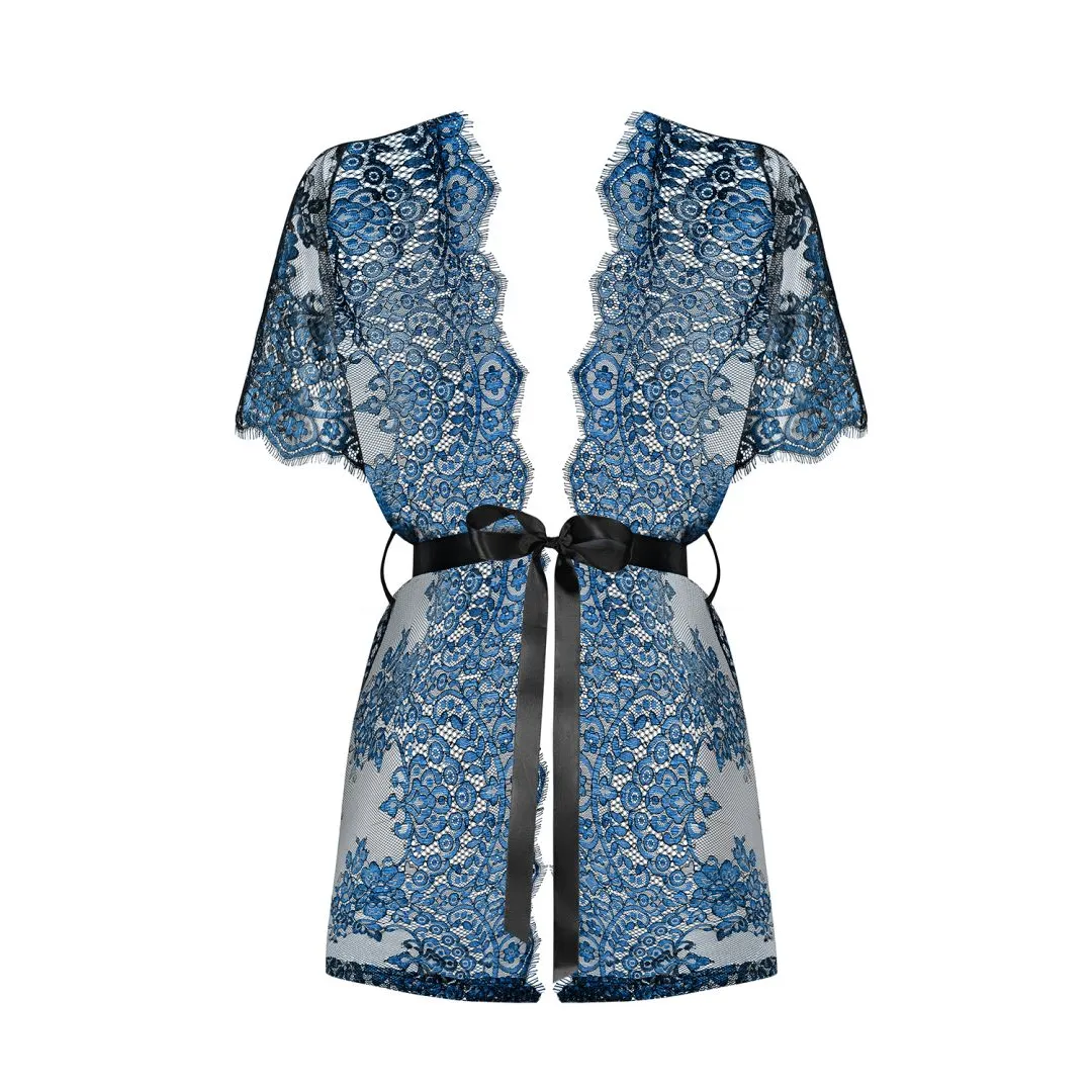 Transparenter Bademantel Träumen Sie von einem neuen Bademantel, der perfekt zu Ihrer Lieblingsunterwäsche passt? Speziell für Sie haben wir ein einzigartiges Modell des Glücks geschaffen, das aus der Kombination eines phänomenalen Schwarz und eines charmanten Indigo-Blaus besteht 😉 Elegante Spitze, klassischer Schnitt und transparentes Material. Wir präsentieren Ihnen die wunderschöne Yassmyne! Entdecken Sie die verlockenden Details: – schöner Spitzenbademantel – blaue Spitze mit Blumenmuster? ein wenig weiblicher Charme – transparentes Material – Satinbindung? eine wunderschön betonte Taille – Kanten mit „Wimpern“-Spitze beendet – verleiht Chic – zarte Materialien für die Haut (90% Polyamid, 10% Elasthan)