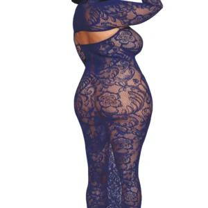 Zweiteiliges Set in großer Größe, langärmliges Oberteil und marineblaues Kleid. Das Kleid kann alleine getragen werden, das Oberteil und das Kleid sind unter der Achsel mit einem Verschluss befestigt. String nicht inbegriffen. Materialien: 93% Nylon, 7% Spandex