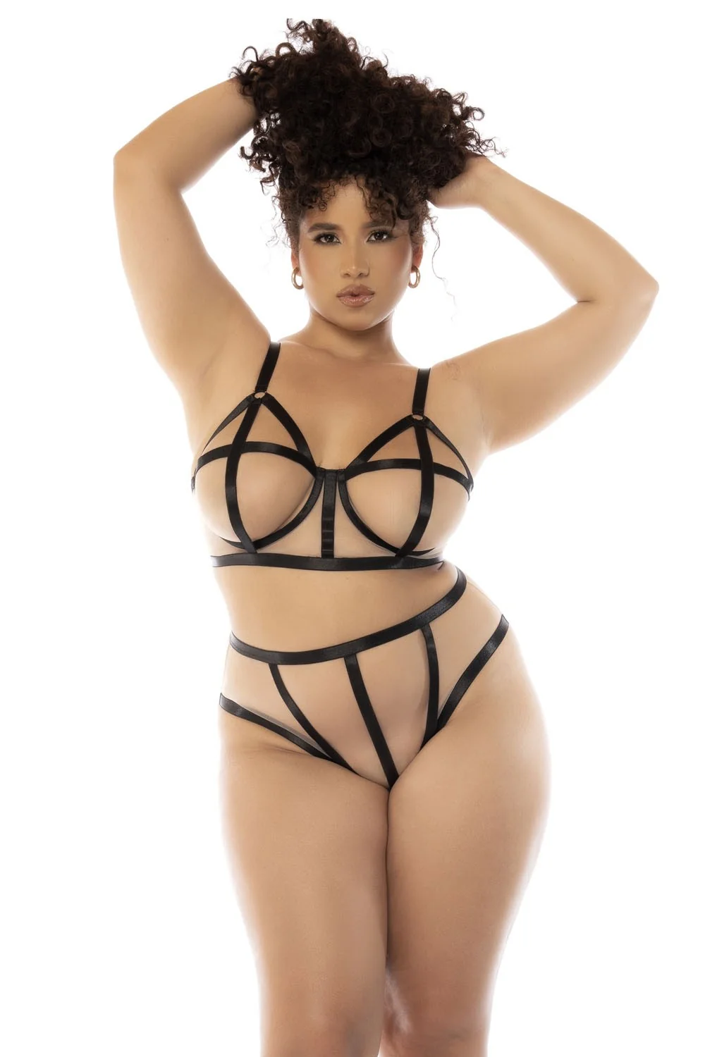 Erkunden Sie die Illusion der Nacktheit und setzen Sie auf klare Linien, die Ihre Silhouette betonen. Dieses große Dessous-Set aus der Mapalé-Kollektion besteht aus drei Teilen aus transparentem Netz mit kontrastierenden Rändern und umfasst einen Bügel-BH mit verstellbaren Trägern sowie einen passenden hoch taillierten Slip. Zusammensetzung: 100% Polyamid – Pflegehinweis: Handwäsche, nicht mit Bleichmittel verwenden, nicht bügeln.