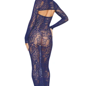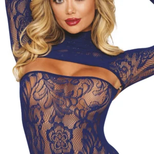 Zweiteiliges Set mit langärmeligem Oberteil und marineblauem Kleid. Das Kleid kann allein getragen werden, das Oberteil und das Kleid sind durch eine Befestigung unter der Achsel verbunden. String nicht inbegriffen. Materialien: 93% Nylon, 7% Spandex